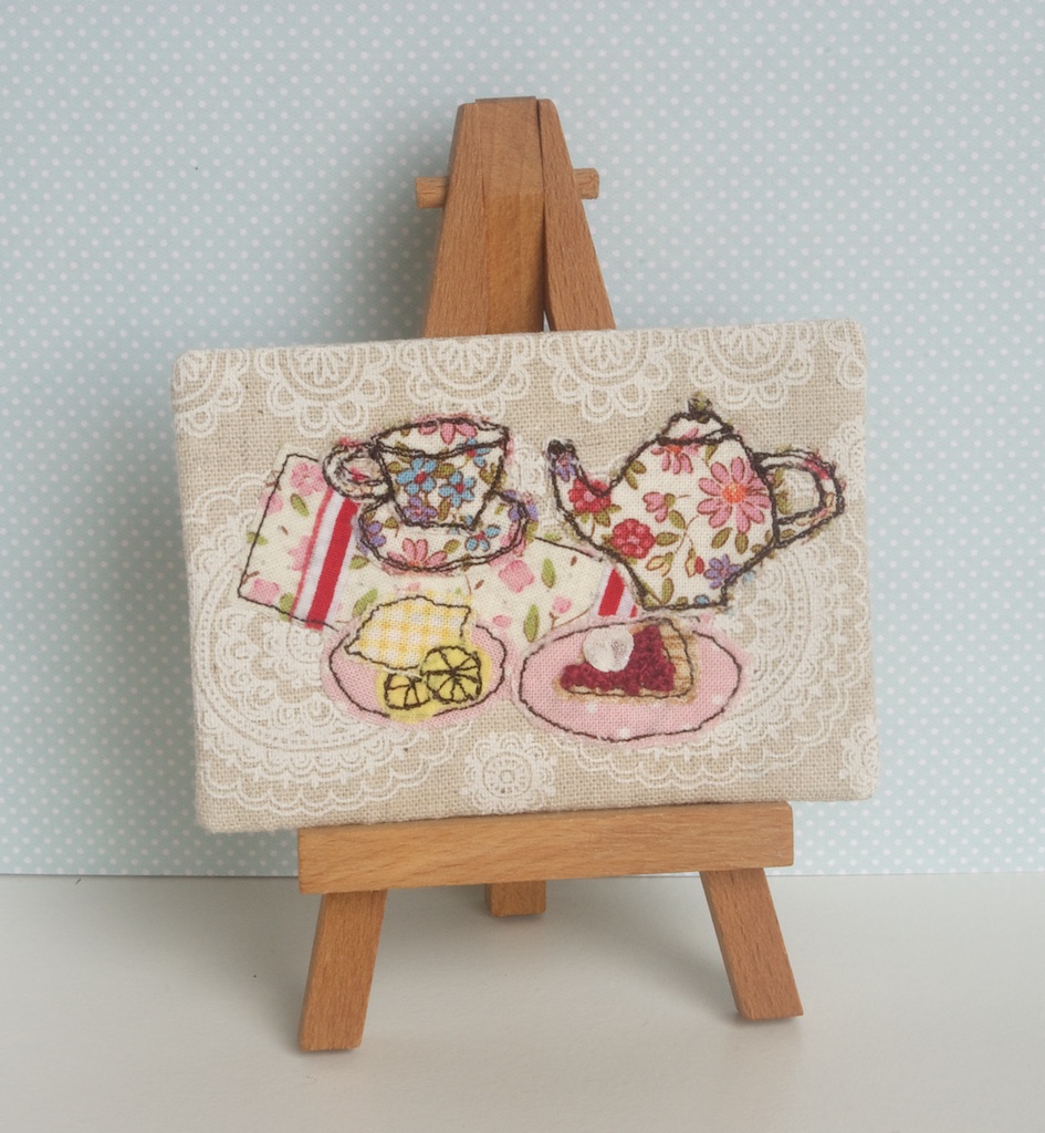 Finally I finished these four floral coasters that I started after the holidays, but planned to make last year. The tiny squares with fruit and vegetables were made while I was practicing free motion machine embroidery which was a lot of fun. A few of the squares I have already turned in to different things, but for these four I only now found the time. Don't we all need more time?